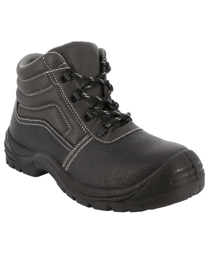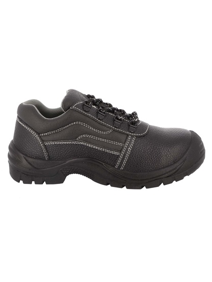 Benefícios > sapato de baixa segurança. > Alta resistência graças à ponta de aço e inserção anti-perfuração. > resistência a hidrocarbonetos graças à sola injetada pela Adúra. > confortável graças à língua acolchoada com foles.