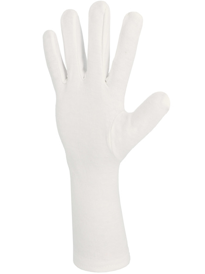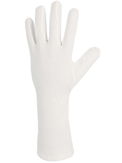 LUVA DE ALGODÃO ENTRELOCK BRANQUEADA COM BAIA. COMPRIMENTO 35 CM.
