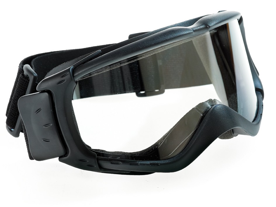 Desembaciador incolor. Óculos em espuma de poliuretano, flexível muito confortável e que se encaixa perfeitamente no formato do rosto . Faixa elástica ajustável.