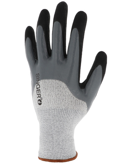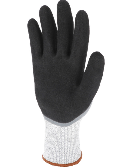 Proteção de corte [Nível de corte do índice D] Luva de proteção de revestimento de nitrito duplo. Suporte de malha uma peça (sem emenda). Calibre 13. Suporte em fibras HDPE de alta resistência e outras fibras técnicas. (HDPE: polietileno de alta densidade). Revestimento duplo de nitrida na palma: - uma camada lisa na cor cinza para impermeabilidade - uma camada de areia na cor preta para agarrar em ambientes molhados ou oleosos. Camada única e lisa revestida de costas (3/4 revestida). Pontas dos dedos revestidas de camada dupla. Pulso elástico. Cor cinza/preta.