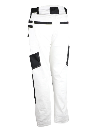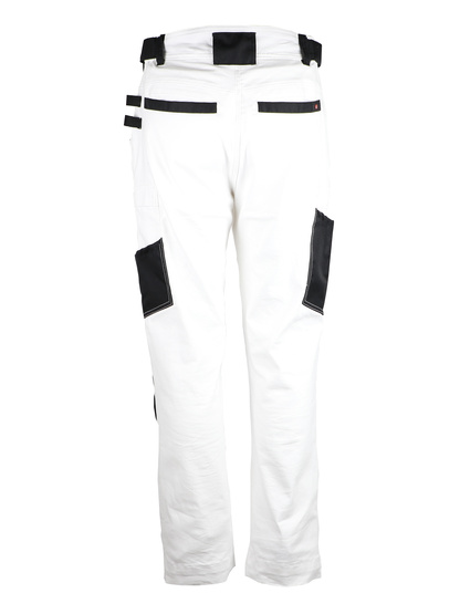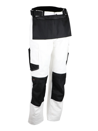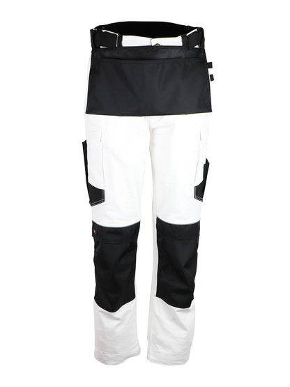 Grande conforto e liberdade de movimento com a adição de elastano que proporciona elasticidade sem comprometer a robustez e resistência das calças. Inserções contrastantes trazendo um olhar que é ao mesmo tempo sóbrio, moderno e dinâmico. Tecido reforçado para bolsos de joelheiras. Muitos bolsos de armazenamento facilitando o trabalho. Projetado e realizado em colaboração com pintores profissionais.