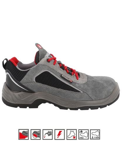 | Benefícios | Sapatos vendidos com um par extra de cadarços cinza. Fronteiras retro-reflexivas. Pescoço com sistema único de E.F.P (Ergonomic Espuma protect): design & materiais especialmente projetados para limitar pontos de compressão, estabilizar o laço para fornecer conforto e suporte ideal. A composição e estrutura do forro de Malha permitem que o pé respire (Pacote de Ar Condicionado). Sola de dupla densidade, antiestática, antiderrapante, resistente a óleos e hidrocarbonetos, feita por injeção direta na parte superior, garante alta resistência a tensões mecânicas. |
